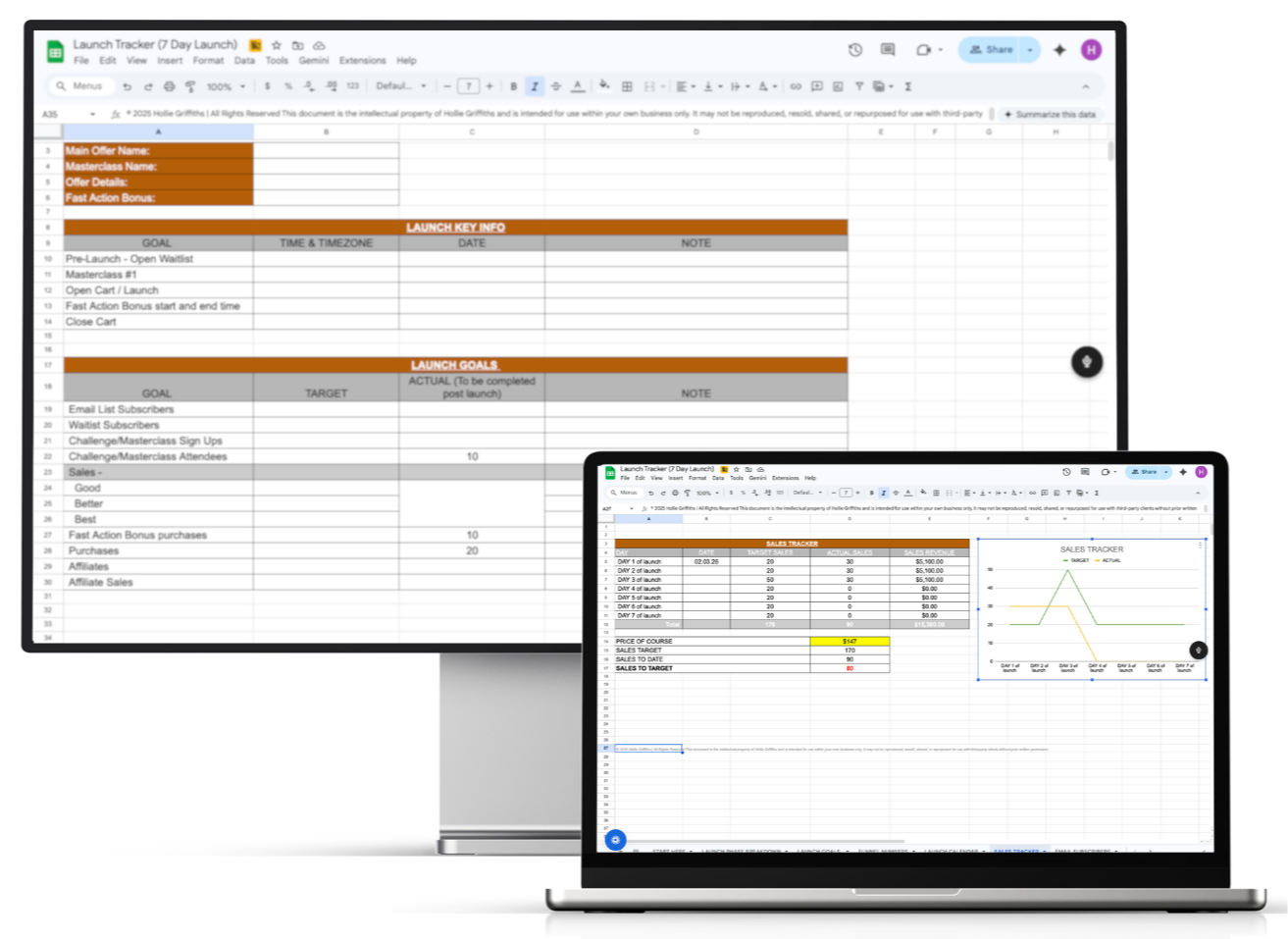 Stop launching blind. This plug-and-play spreadsheet tracks every metric that matters from email open rates to daily sales so you can make real-time decisions, spot what's converting, and walk away from every launch with data you can actually use next time.